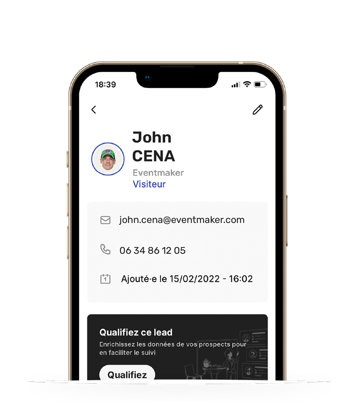 Ils vous sera très facile d'identifier votre interlocuteur ,de scanner puis qualifier ce contact grâce à notre application.
